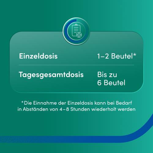 Wenn vom Arzt nicht anders vorgeschrieben, liegt die empfohlene Einzeldosis für Erwachsene und Jugendliche ab 16 Jahren bei ein bis zwei Beuteln. Gerade bei starken Beschwerden am Anfang einer Erkältung sind zwei Sticks auf einmal sinnvoll. Beim Abklingen der Symptome sollten Sie die Dosis wieder reduzieren. Je nach Bedarf können Sie die Einnahme nach vier bis acht Stunden wiederholen. Beachten Sie jedoch, dass Sie pro Tag maximal sechs Granulat-Sticks zu sich nehmen.