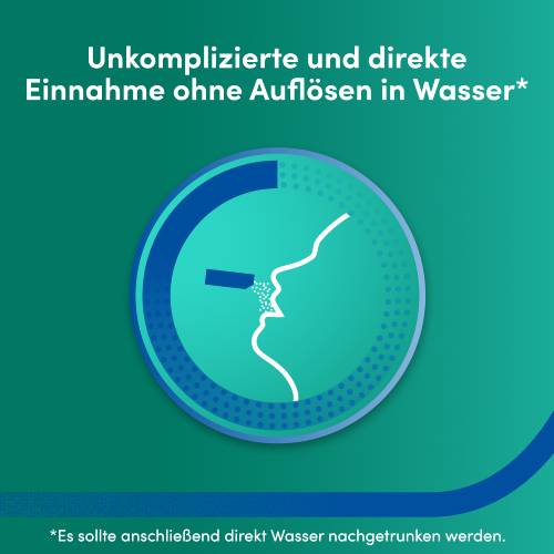 Geben Sie den Inhalt des Beutels (Sticks) direkt in den Mund. Das Granulat löst sich im Speichel und wird dann geschluckt. Nach der Einnahme sollten Sie Wasser nachtrinken.