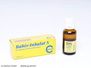 Das Babix Inhalat N wird bei Erkrankungen der oberen Luftwege, Bronchitis und grippale Infekte bei Säuglingen, Kindern und auch Erwachsenen eingesetzt. Die reinen ätherischen Öle aus Eukalyptus und Fichtennadeln befreien die Atemwege, lösen den Schleim und erleichtern die Nasenatmung. Ein paar Tropfen von Babix- Inhalat N wird auf das Kleidungsstück in der Nähe der Atmungsorgane, wie Lätzchen oder Träger des Strampelhöschens getropft.
