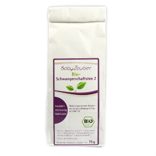 BabyZauber Bio-Schwangerschaftstee 2 enthält feinste Kräuter speziell auf die Bedürfnisse ab SSW 28 abgestimmt. Die harmonisch fein abgestimmte Komposition unterstützt das Wohlbefinden der Frau.