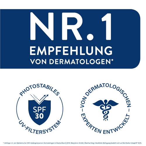 3 Umfrage i.A. von Galderma im Juni 2019 bei 445 niedergelassenen Dermatologen in Deutschland (Marpinion GmbH, Oberhaching). Gestützte Befragung bezieht sich auf die Gesamtmarke Daylong™/Cetaphil® Sun Daylong™