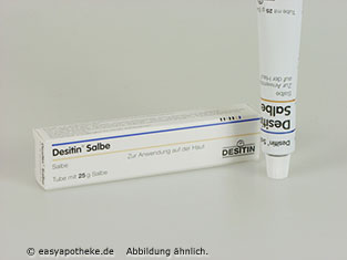 Die Desitin Salbe wird zur Behandlung und Pflege von oberflächlichen Verletzungen der Haut angewendet. Die Salbe enthält eine Kombination der beiden Wirkstoffe Zinkoxid und Lebertran. Lebertran sorgt für eine Aufweichung von Krusten und Schuppen und das Zinkoxid verfügt über zusammenziehende Eigenschaften, wodurch es zu einer Abdichtung von verwundeten Hautbereichen und Blutgefäßen kommt. Wundabsonderungen werden vermindert und nässende Stellen trocknen aus. Gleichzeitig werden die Mikroorganismen durch die Aufnahme von Zink-Ionen inaktiviert. Die Desitin Salbe fördert den Heilungsprozess geschädigter Haut und bietet einen gewissen Hautschutz.