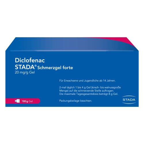 Diclofenac STADA® Schmerzgel forte weist eine doppelt so hohe Konzentration des schmerzlindernden Wirkstoffs Diclofenac auf und ermöglicht eine lang anhaltende Freisetzung des Wirkstoffs im Gewebe. Außerdem bietet Diclofenac STADA® eine wirkungsvolle Therapie von akuten Zerrungen, Verstauchungen oder Prellungen. Das Schmerzgel wirkt gezielt an den Stellen, an denen die Schmerzen auftreten.