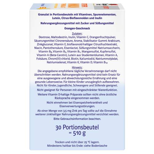 Doppelherz system ORTHOPRO IMMUN TRINKGRANULAT liefert 21 ausgewählte Mikronährstoffe, die einen Beitrag leisten: