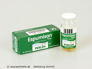 Die Espumisan Perlen werden zur symptomatischen Behandlung gasbedingter Magen-Darm-Beschwerden angewendet. Die Kapseln enthalten unter anderem den Wirkstoff Simeticon. Der Wirkstoff ist in der Lage im Magen-Darm-Trakt in den Nahrungsbrei einzudringen und dort die Oberflächenspannung von eingeschlossenen Gasbläschen zu verringern, so dass diese zerfallen. Die nun freiwerdenden Gase werden daraufhin von der Darmwand aufgenommen oder auf natürliche Weise ausgeschieden. Die Espumisan Perlen können größere Gasansammlungen im Magen und Darm lösen, wodurch es zu einer Linderung von Blähungen, Spannungsgefühle im Bauch, Völlegefühl, Druck im Oberbauch und Aufstoßen kommt.
