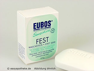 Eubos Sensitive Fest ist ein seifenfreies Waschstück zur täglichen, schonenden Hautreinigung und -pflege für Körper und Gesicht. Die wertvolle Wirkstoffkombination und ein hautfreundlicher pH-Wert helfen, die Haut vor Austrocknung zu bewahren und ihre natürliche Barrierefunktion zu schützen. Die Wirkstoffe Allantoin und Panthenol wirken einer Entfettung entgegen und wirken reiz- und entzündungshemmend. Durch den Verzicht von Farbstoffen, Konservierungsstoffen und Parfüm ist Eubos Sensitive Fest auch bei empfindlicher Haut besonders gut verträglich.