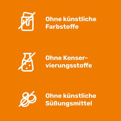 - Ohne künstliche Farbstoffe, Konservierungsstoffe und Zucker