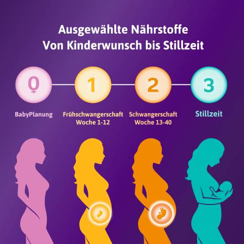 ³Folsäure Plus ist eine Kombination aus Folsäure und Metafolin®. Metafolin® ist eine Form von Folat, die direkt vom Körper verwendet werden kann. Folat wird vom Körper auch nach dem 1. Trimester benötigt, z. B. als Beitrag zum Wachstum des mütterlichen Gewebes (z. B. der Plazenta). Metafolin ist eine eingetragene Marke der Merck KGaA, Darmstadt, Deutschland und wird unter Lizenz verwendet.