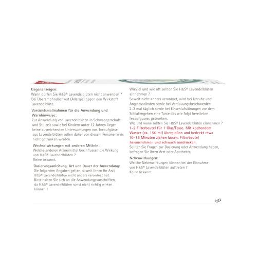Bei Unruhe und Angstzuständen sowie bei Verdauungsbeschwerden wird 2-3 mal täglich sowie bei Einschlafstörungen vor dem Schlafengehen eine Tasse des wie folgt bereiteten Teeaufgusses getrunken. 1-2 Filterbeutel für 1 Glas/Tasse. Mit kochendem Wasser übergießen und bedeckt etwa 10-15 Minuten ziehen lassen. Filterbeutel herausnehmen und schwach ausdrücken.