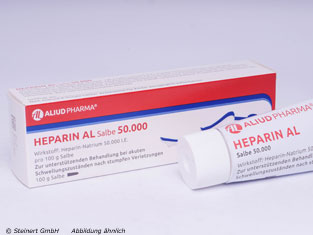 Die Heparin AL Salbe 50000 wird zur äußerlichen, unterstützenden Behandlung von Schwellungen, stumpfen Verletzungen und oberflächlichen Venenentzündungen angewendet. Die Salbe enthält unter anderem den Wirkstoff Heparin-Natrium. Durch diesen Wirkstoff wird die Blutgerinnung verhindert, wodurch das Blut flüssig gehalten und eine Verdickung und ein Zusammenkleben des Blutes verhindert wird. Zusätzlich werden Wasseransammlungen im umliegenden Gewebe gemindert und Schwellungen und Schmerzen lassen nach. Die Heparin AL Salbe 50000 lindert die Beschwerden bei Prellungen, Quetschungen, Blutergüssen und anderen Verletzungen.