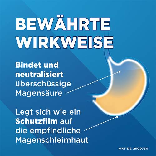 Maaloxan® ist ein sogenanntes Antazidum, das überschüssige Magensäure bindet. Dank der Wirkstoffkombination aus Algeldrat und Magnesiumhydroxid punktet Maaloxan® bei Sodbrennen mehrfach – sowohl als Akuthilfe als auch als aktiver Magenschutz. Magnesiumhydroxid lindert den brennenden Schmerz, Algeldrat legt sich wie ein Schutzfilm auf die empfindliche Schleimhaut und unterstützt die Selbstheilung.