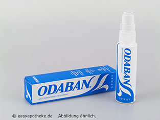 Das Odaban Antitranspirant Deodorant Spray wird zur Minderung einer übermäßigen Schweißbildung und dem damit verbunden Schweißgeruch angewendet. Das Spray enthält den zusammenziehenden Wirkstoff Aluminiumchlorid. Der Wirkstoff verbindet sich auf der Haut mit den Proteinen. Die daraus entstehende Verbindung blockiert als Pfropfen die Ausgänge der Schweißkanäle. Der Wirkstoff wird abends aufgetragen, wobei der Schutz über mehrere Tage erhalten bleibt. Das Odaban Antitranspirant Deodorant Spray stoppt nicht die Funktion der Schweißdrüsen, sondern leitet die Transpiration auf Körperstellen um an denen sie weniger stört.