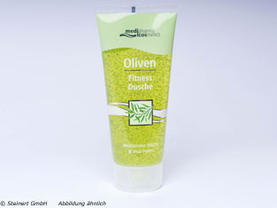 Oliven Fitness-Dusche aktiviert Körper, Geist und Seele und lässt somit die tägliche Körperpflege zu einem mediterranen Erlebnis werden.Die neue Pflege-Formel mit Olivenöl gefüllten Vital-Perlen und hautpflegendem Panthenol schützt die Haut vor dem Austrocknen und pflegt sie samtig weich.