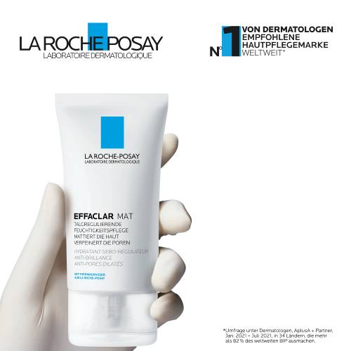 Mattierende Feuchtigkeitspflege für fettige und zu Akne neigende Haut Die EFFACLAR MAT Gesichtscreme von La Roche Posay mit Sebulyse sowie talgreduzierenden Micro-Spheres und Perliten wirkt einer übermäßigen Talgproduktion entgegen und mattiert die Haut langanhaltend. Ab der ersten Anwendung hinterlässt die Gesichtspflege für unreine Haut ein ebenmäßigeres Erscheinungsbild mit weniger Glanz. La Roche Posay EFFACLAR MAT für Teenager und Erwachsene Dank des Aktiv-Wirkstoffs LHA wirkt die Feuchtigkeitspflege für fettige, unreine Haut wie ein Mikro-Peeling und beugt effektiv überschüssigem Talg vor. Zugleich spendet das wohltuende Thermalwasser empfindlicher Haut Feuchtigkeit und beruhigt sie.