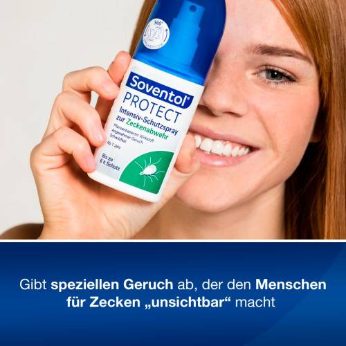 Wasserbeständig, schwitzfest und gut verträglich: Soventol® Protect leistet eine effektive Unterstützung zur Zeckenabwehr. Denn das Intensiv-Schutzspray kann Zecken bis zu 6 Stunden lang fernhalten.