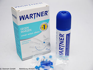 Das Wartner Warzen Spray wird zur Entfernung von Warzen angewendet. Das Spray enthält eine Kombination der beiden Wirkstoffe Dimethylether und Propan. Die Wirkstoffe sorgen dafür, dass die Warze bis auf die Wurzel vereist wird. Unter der Warze kommt es zur Entstehung einer Warze, wodurch sie nach ungefähr zwei  Wochen abfällt. Während dieser Dauer hat die haut genug Zeit sich unter der Warze neu zu bilden. Durch das Wartner Warzen Spray wird die Gefahr einer Ausbreitung der Infektion gebannt und die Viren sicher abgetötet.