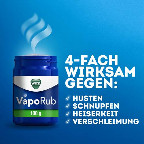 - ERKÄLTUNGSSALBE 4-FACH WIRKSAM BEI ERKÄLTUNGSSYMPTOMEN: WICK VapoRub Erkältungssalbe lindert effektiv, ob Husten, Schnupfen, Heiserkeit oder Verschleimung